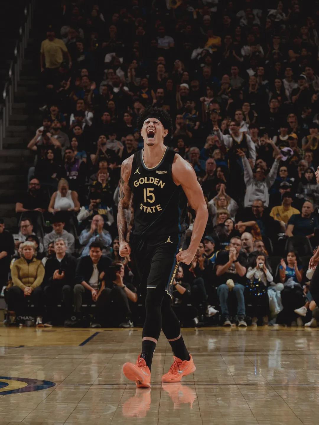 先看一组数据对比:过去7场比赛,勇士前锋吉-桑托斯场均15分5.1篮板3.1助攻1.3抢断1盖帽,投篮命中率62.7%,三分命中率43.3%。追梦格林场均7.3分4.7篮板4.3助攻0.9抢断0.3盖帽,投篮命中率34.6%,三分命中率32.5%。