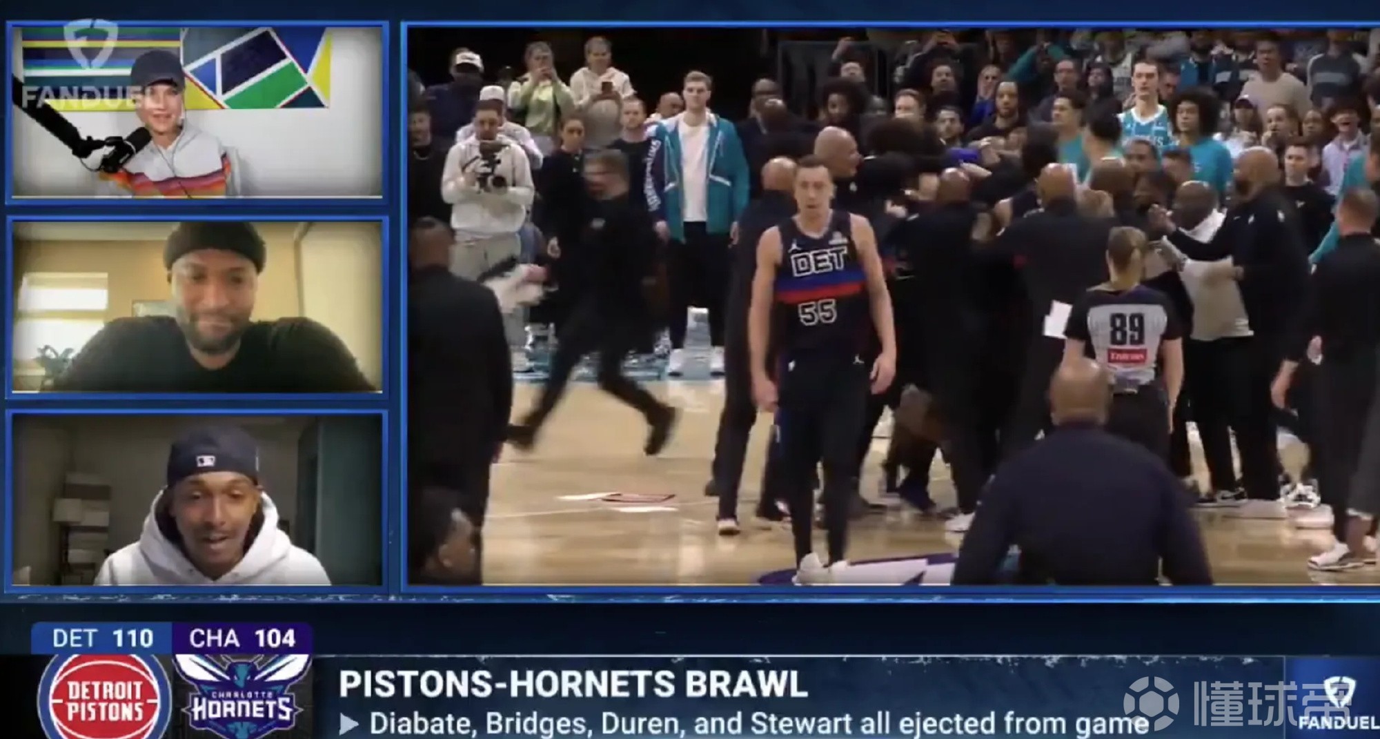 在昨日活塞与黄蜂的比赛中,双方球员爆发了激烈冲突。前NBA球员路易斯-威廉姆斯在播客节目中聊起了活塞球员邓肯-罗宾逊在冲突发生后的反应。