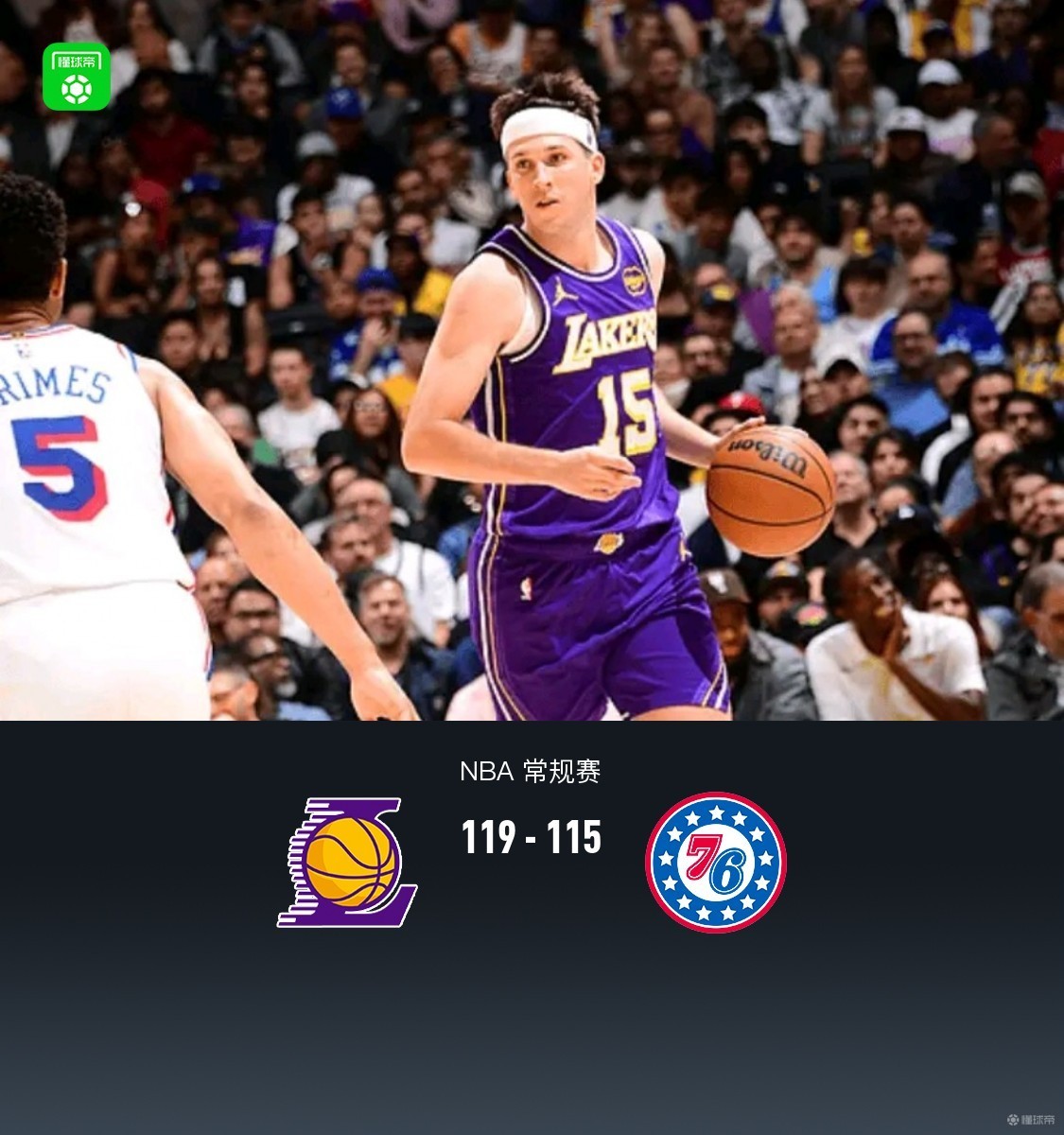 湖人119-115逆转76人,里夫斯35分,东契奇伤退,恩比德空砍35+7+7