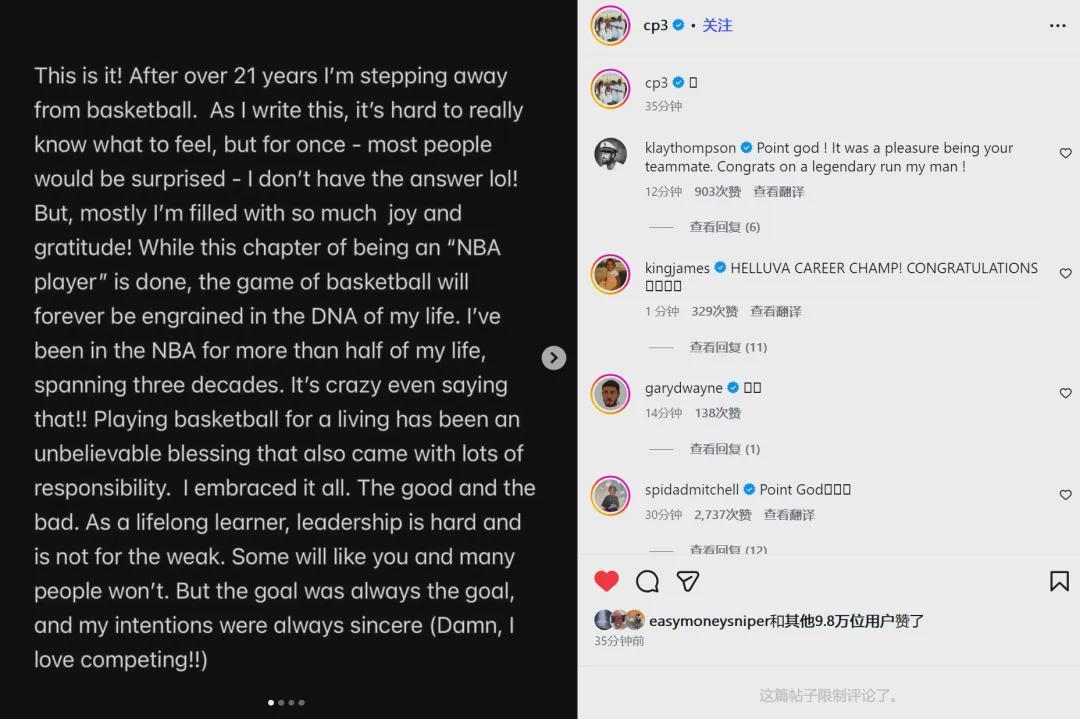 保罗宣布退役!结束21年生涯!再见了,NBA