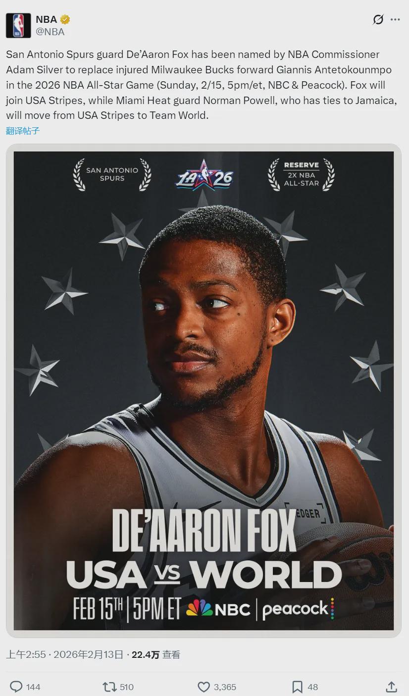 记者:恭喜福克斯递补进入全明星,但是震惊于他排在哈登前面