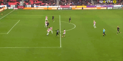第14分钟,里德尝试一脚射门,皮球打高