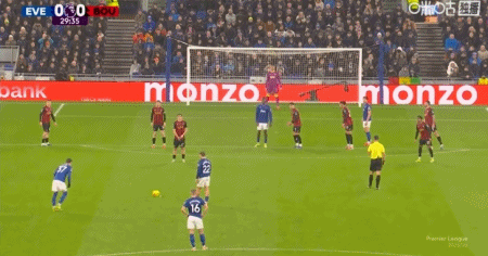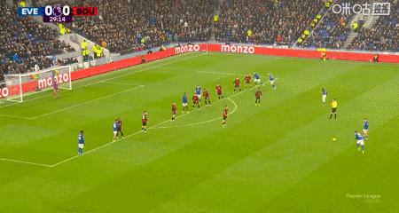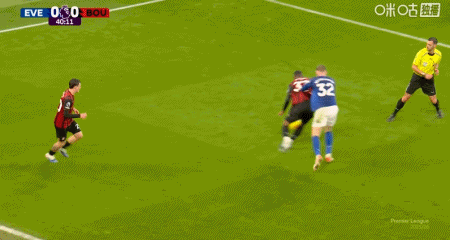 第42分钟,拉扬送点,恩迪亚耶主罚点球命中,埃弗顿1-0伯恩茅斯
