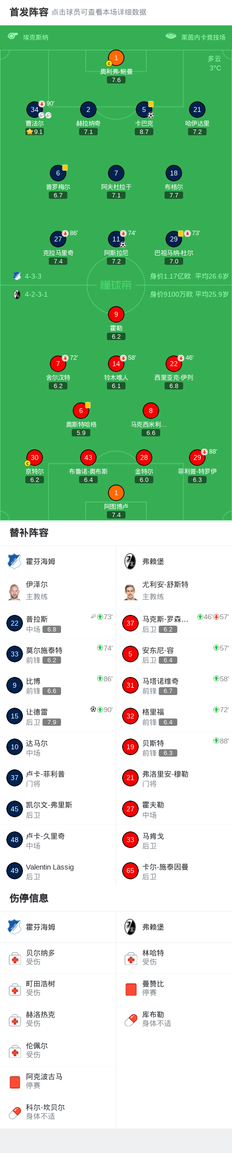 霍芬海姆3-0大胜弗赖堡,让德雷建功,卡巴克破门