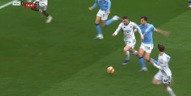 第18分钟,索尔福德城威胁进攻,奥斯特菲尔德打门没踢好