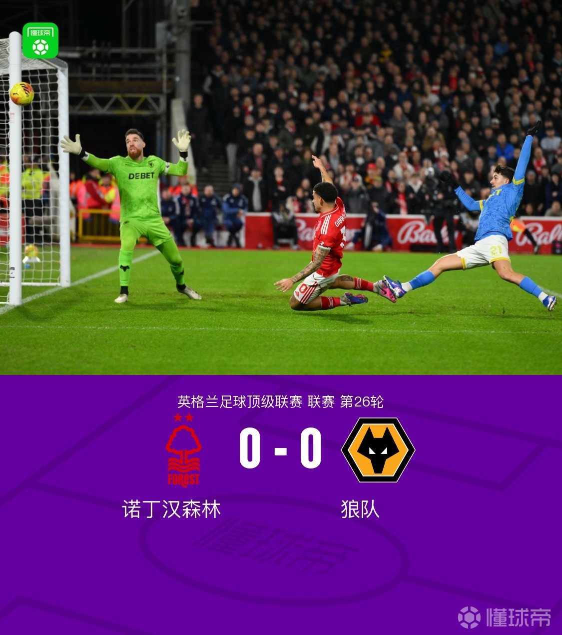 诺丁汉森林0-0狼队,卢卡进球被吹,若泽-萨神扑建功