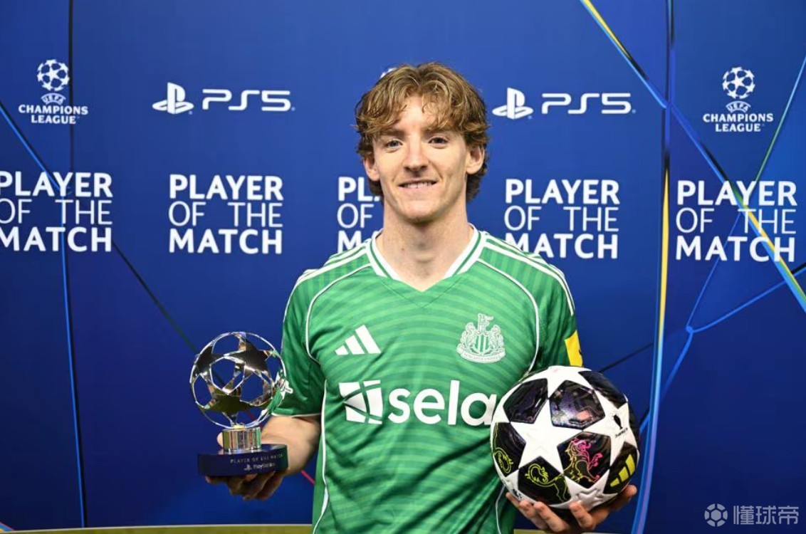 半场大四喜,安东尼-戈登当选纽卡6-1客胜卡拉巴赫全场最佳