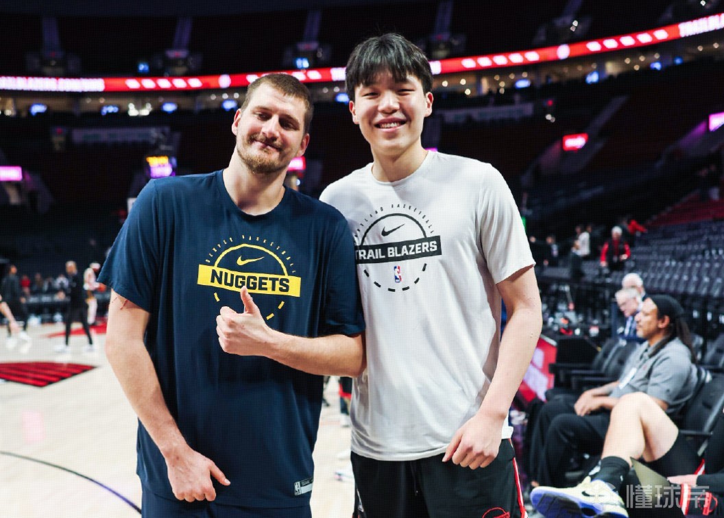 赛前,约基奇找到了杨瀚森,据开拓者记者Yovic报道,两人在打招呼后互相交流了一分多钟,随后合影留念。