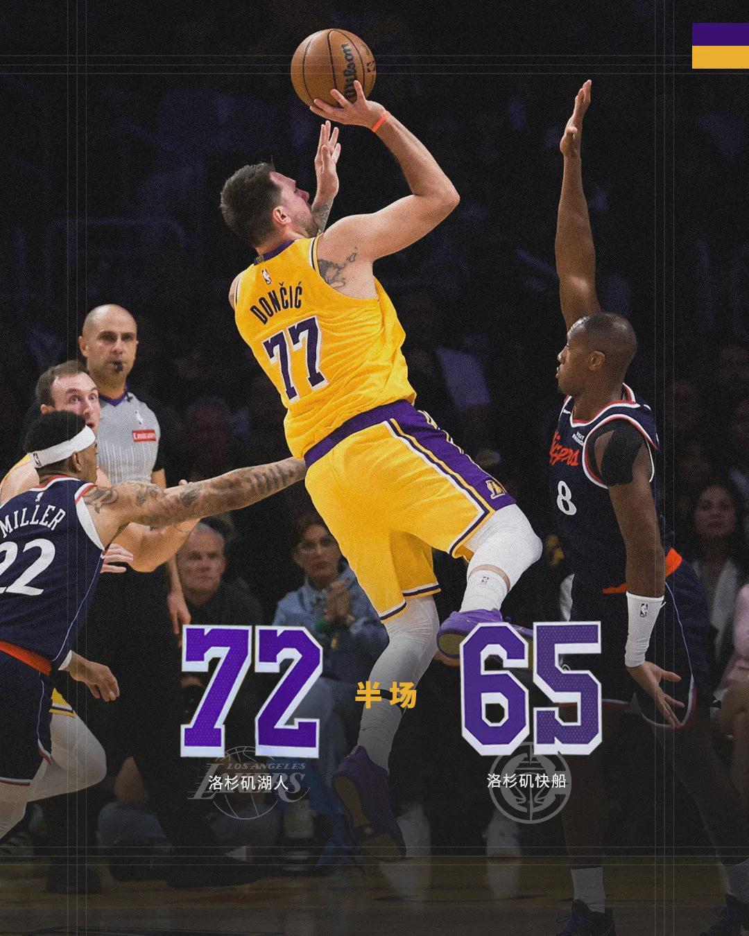 科林斯回到更衣室接受脑震荡检测,提前退出本场比赛。半场战罢,湖人72-65领先快船7分。伦纳德上半场砍下21分3板4助、马瑟林13分3板、科林斯12分。湖人这边,东契奇22分3板6助、里夫斯14分2助、詹姆斯11分2板6助。