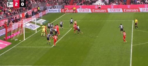 第20分钟,斯塔尼希奇摆渡,凯恩头球破门,拜仁2-0法兰克福