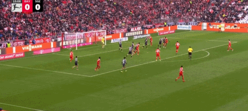 第16分钟,帕夫洛维奇抽射,桑托斯扑救失误,拜仁1-0法兰克福