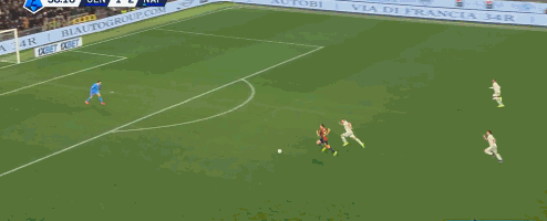 第2分钟,梅雷特无奈送点,马利诺夫斯基主罚命中,那不勒斯0-1